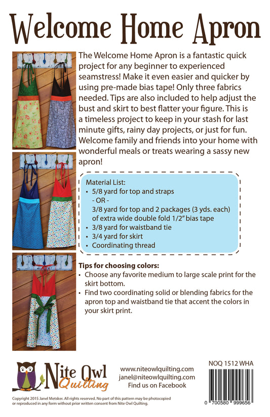 Welcome Home Apron pattern - NOQ