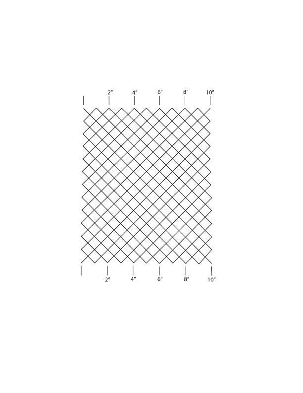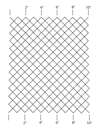 Another must have stencil for every quilters collection. This stencil is set on point and measures 1" across the diagonal of the Square. Perfect for crosshatching or stitching out your favorite Connecting designs across a border or sashing that is divisible by 1". The grid is also marked for a 2", 4", 6", 8" or 10" border for easy alignment.