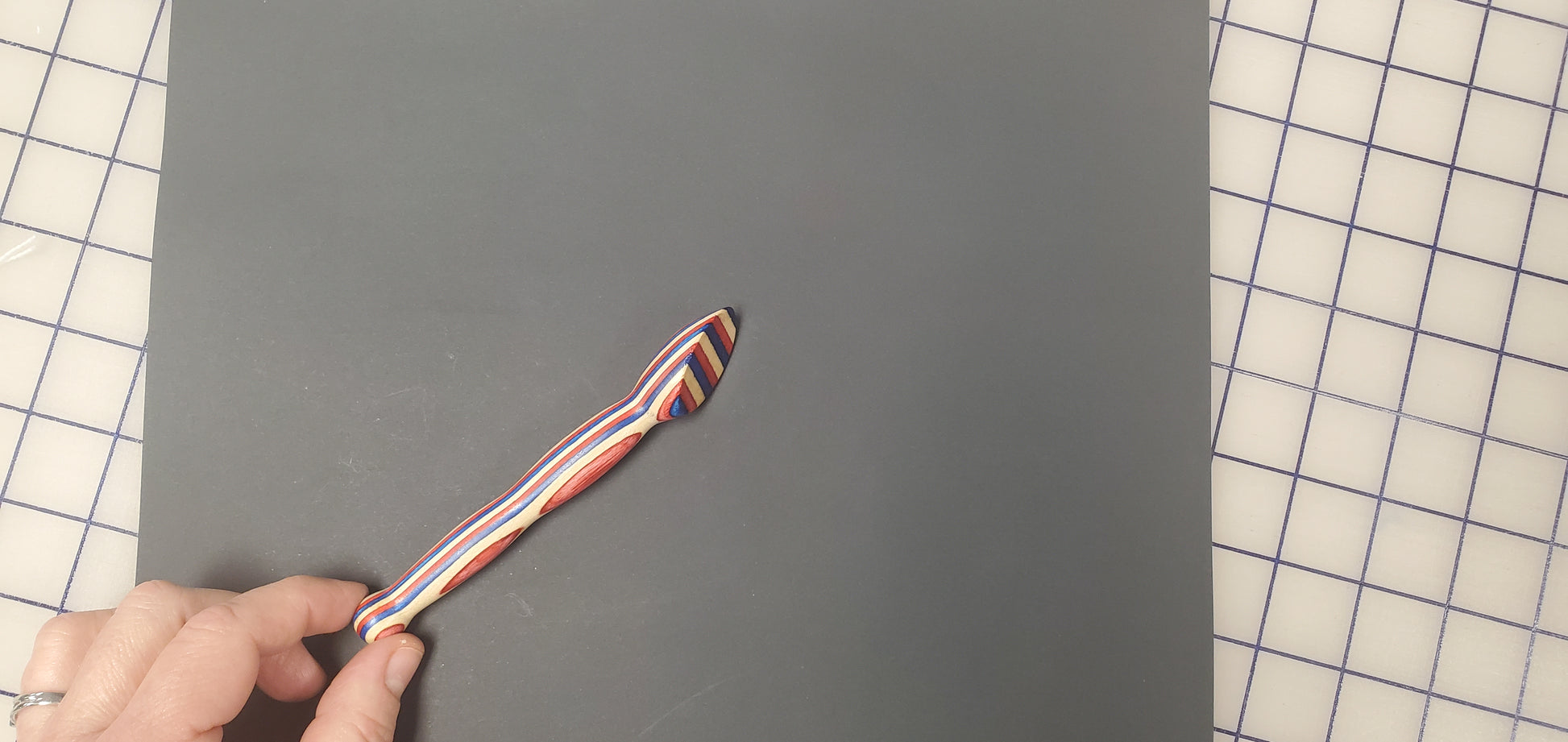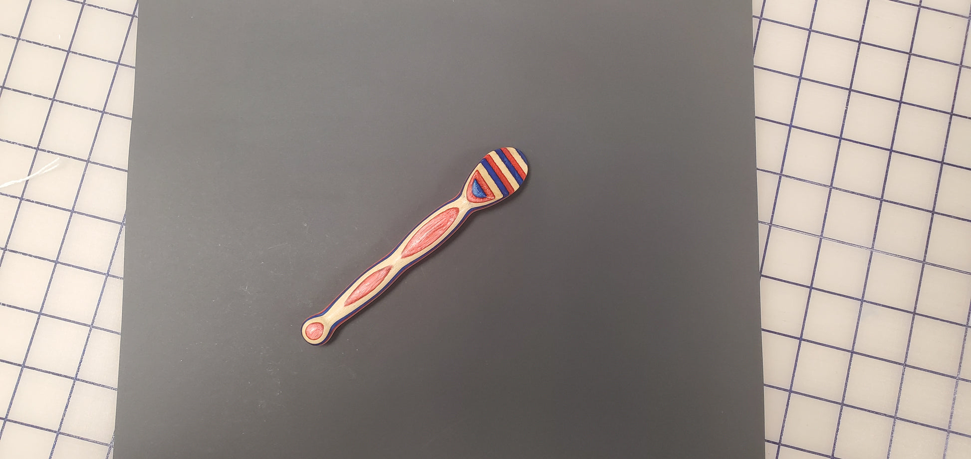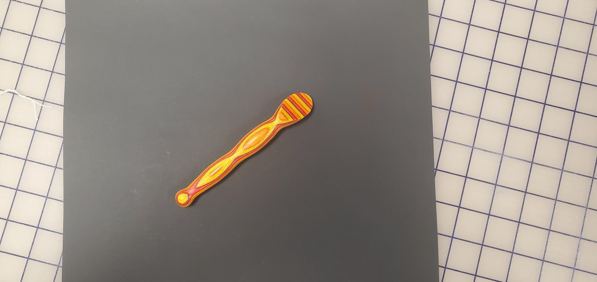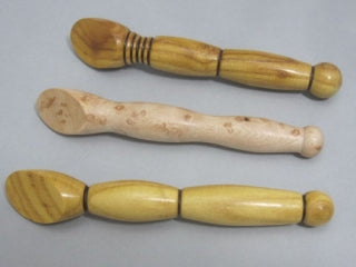 This turning is a small and convenient tool used to press seams open or to one side. It is ideal for use with paper piecing. The press is made from Ozarks hardwood, approx. 7″ long, ¾” diameter with a 30° press angle. The press surface has three coats of shellac for a smooth finish that glides over your fabric.