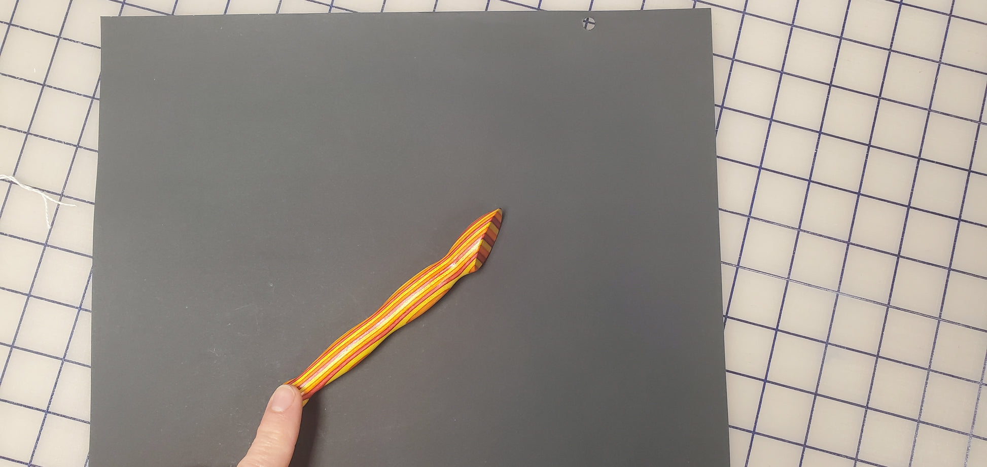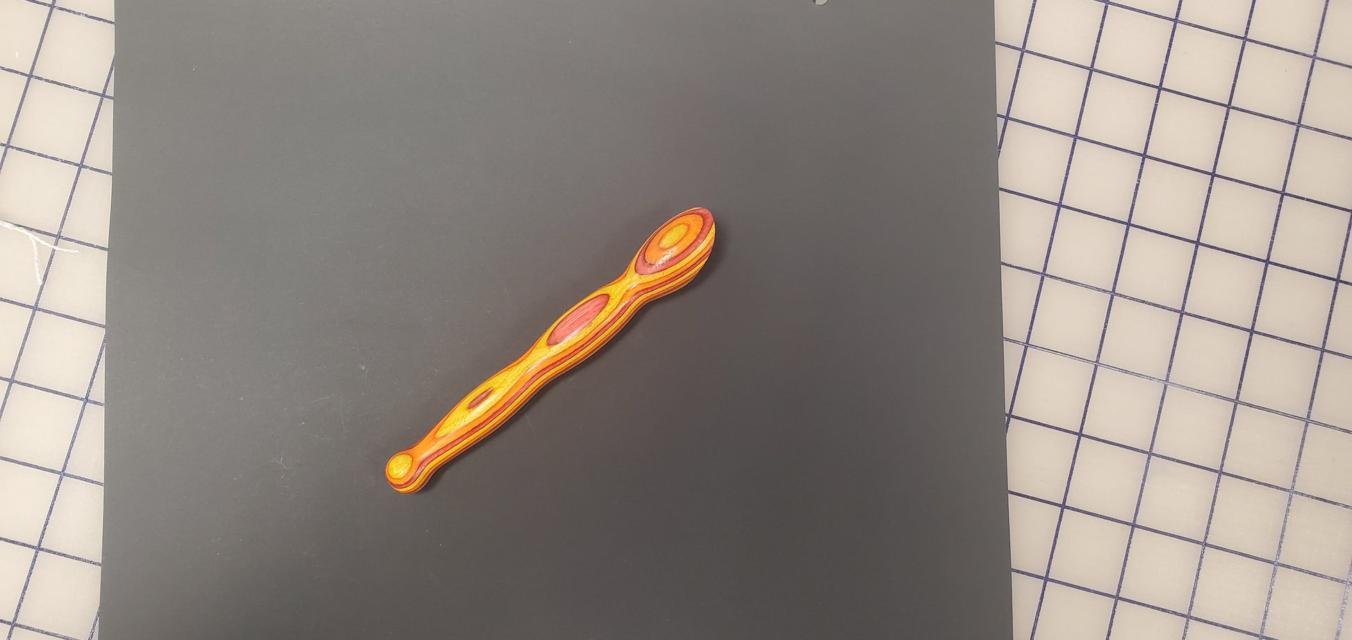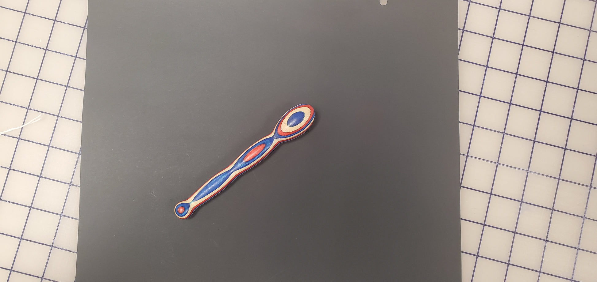 This turning is a small and convenient tool used to press seams open or to one side. It is ideal for use with paper piecing. The press is made from Ozarks hardwood, approx. 7″ long, ¾” diameter with a 30° press angle. The press surface has three coats of shellac for a smooth finish that glides over your fabric.